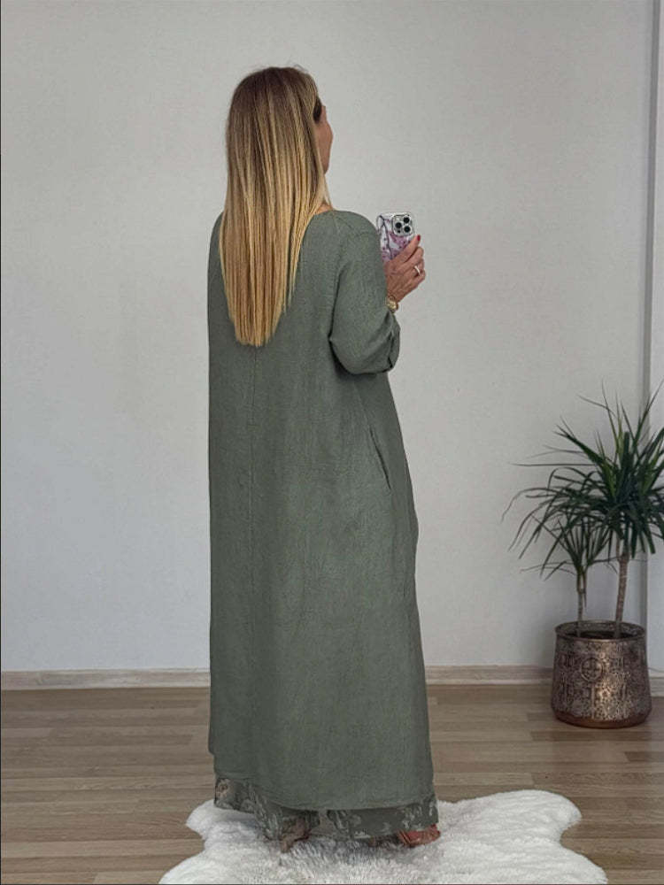 Introducing the Amara | Ease Set, where softness meets sophistication. Crafted for the modern woman, this set flows gracefully over your curves, ensuring comfort without compromise. Perfect for a casual day out or a relaxed gathering with friends, it embodies versatility and ease. Elevate your everyday wardrobe with this timeless addition.