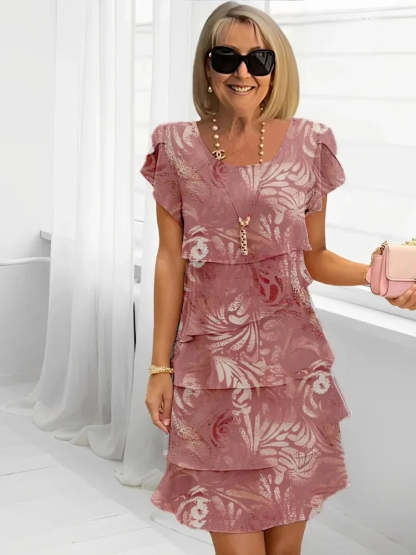 With its flowing A-line silhouette and delicate layered ruffles, this dress creates a flattering shape while allowing you to move with ease. The classic round neckline and soft split sleeves add a graceful touch, making it a perfect choice for luncheons, gatherings, evenings out, or simply enjoying a stylish day.