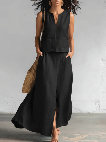 Minimalist And Elegant V-neck Top And Skirt Two-piece Set